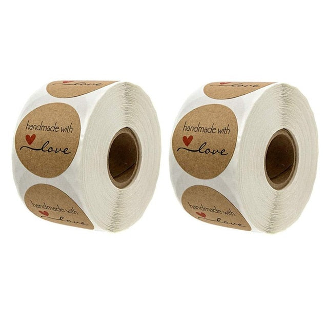 500/1000pcs 1.5Inch DIY Hand Made Handmade With Love Label Wedding Stickers Adhesive Sticker Kraft Round Labels Wholesale price